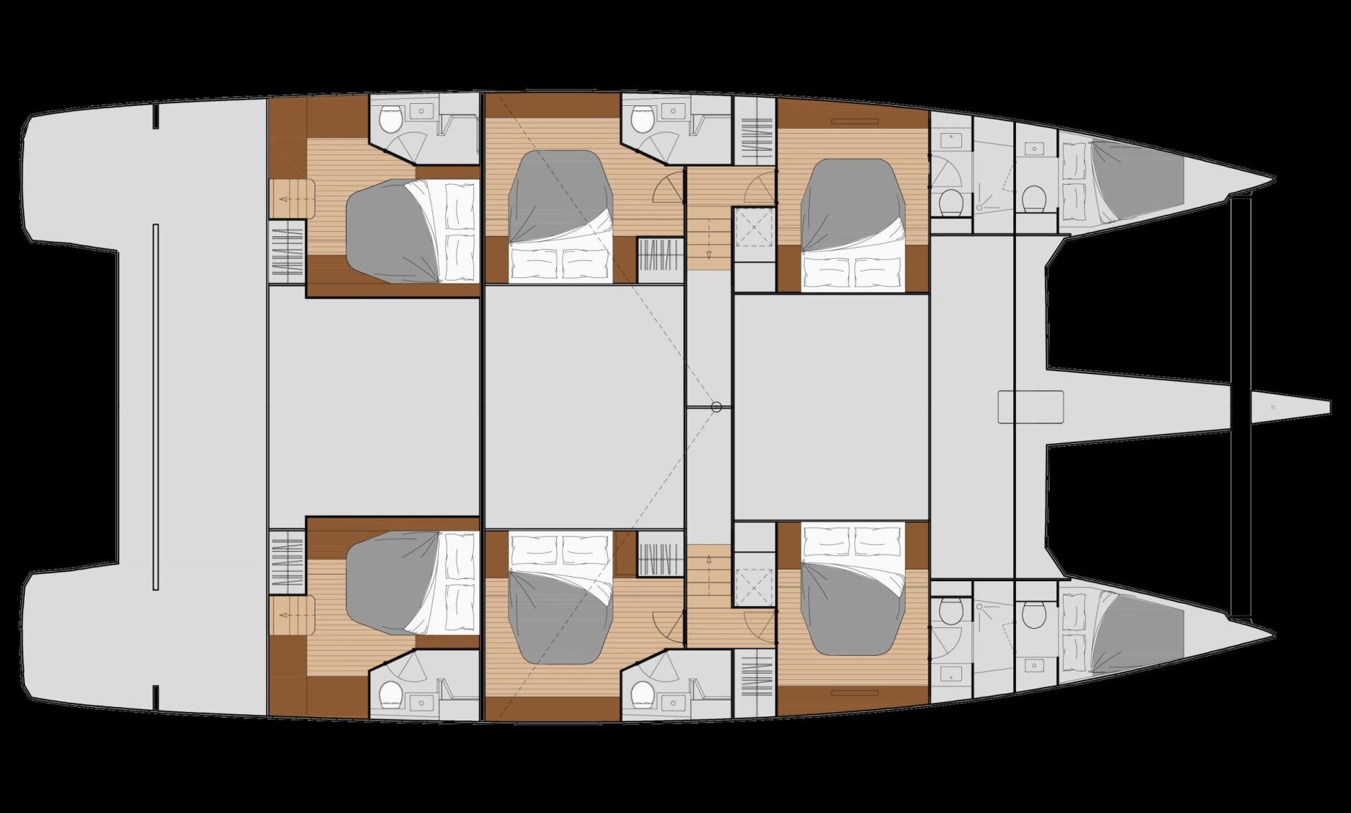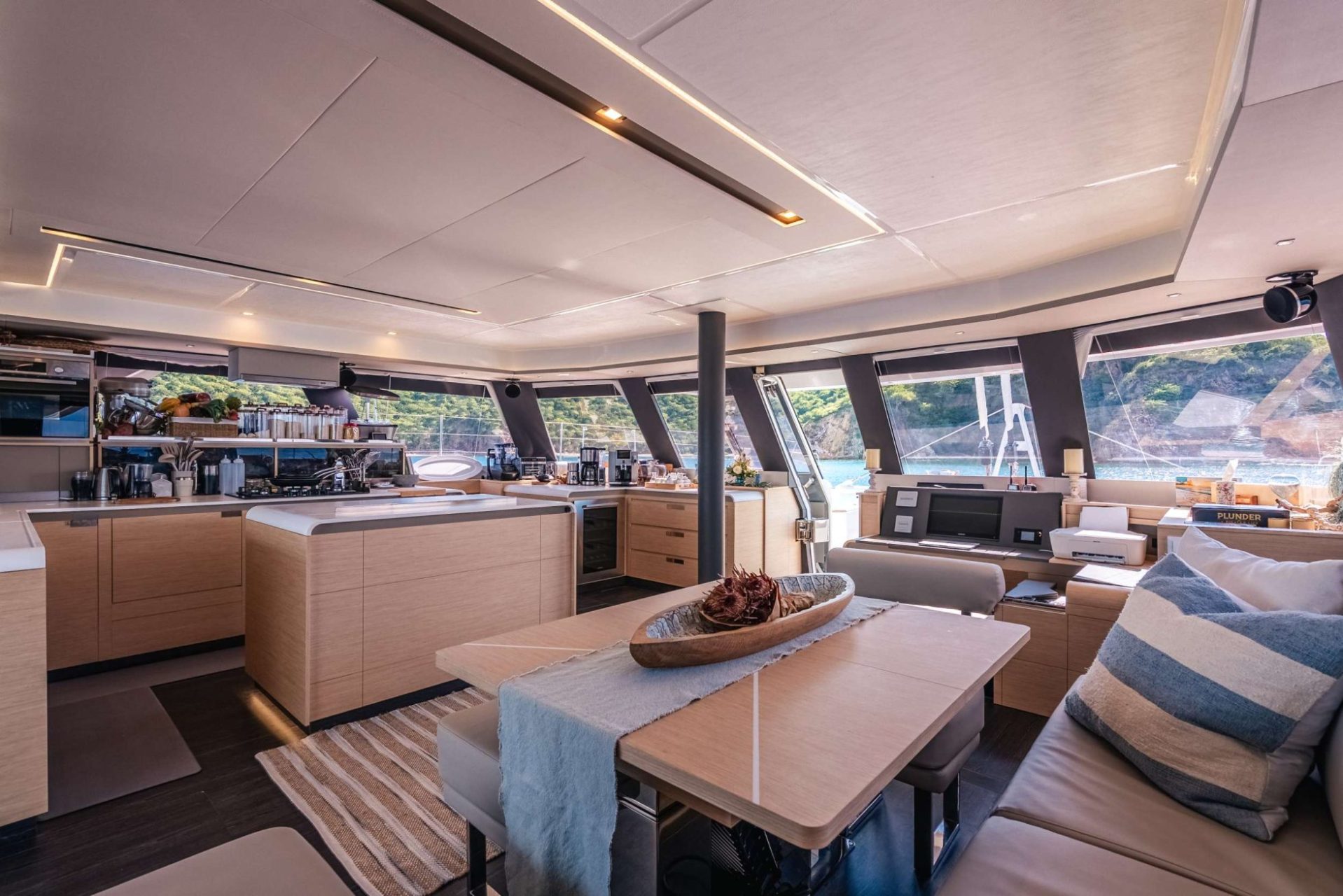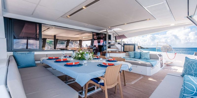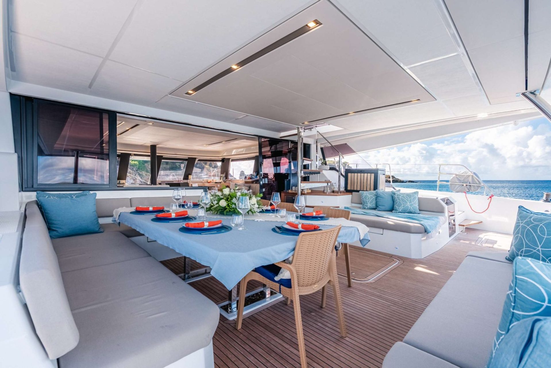BLISS accommodates up to 10 guests in five spacious ensuite queen cabins, offering a beautifully designed, fully air-conditioned interior with modern entertainment systems and Starlink high-speed Wi-Fi so you can stay connected while cruising the Caribbean.
