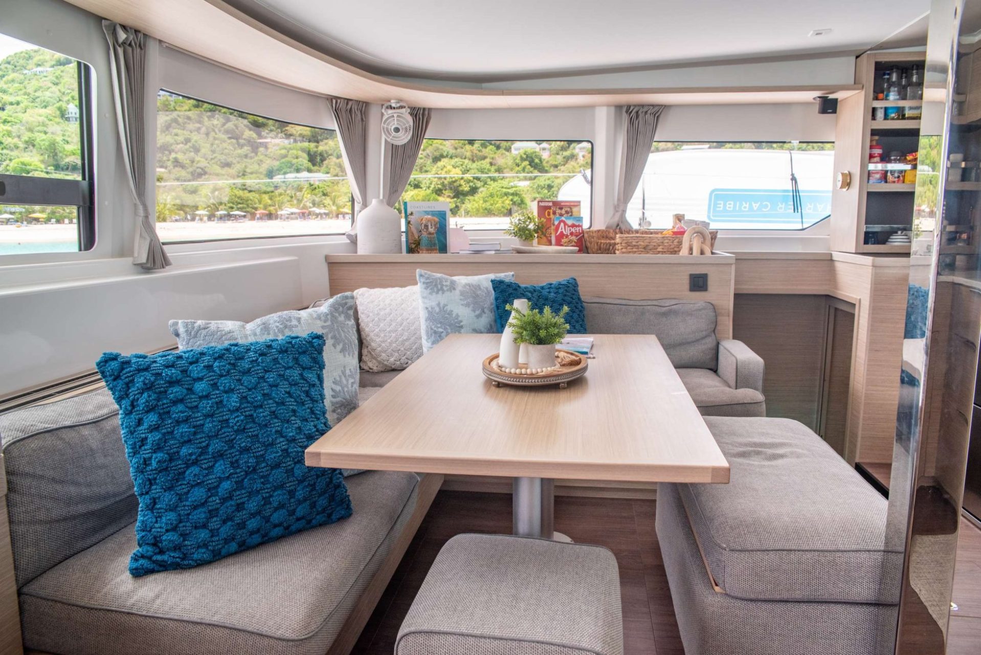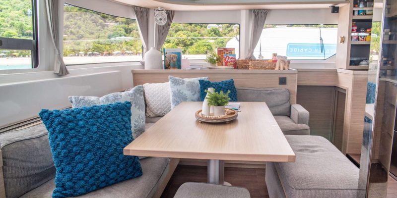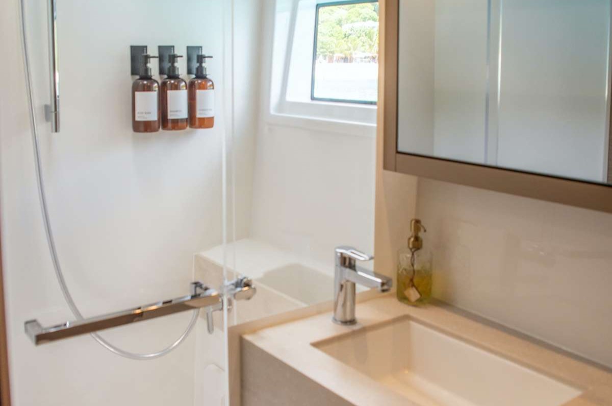 For added comfort, the cockpit is well protected with drop-down shades and a large Bimini sunshade, allowing guests to relax and dine comfortably out of the sun while enjoying the gentle Caribbean breeze.