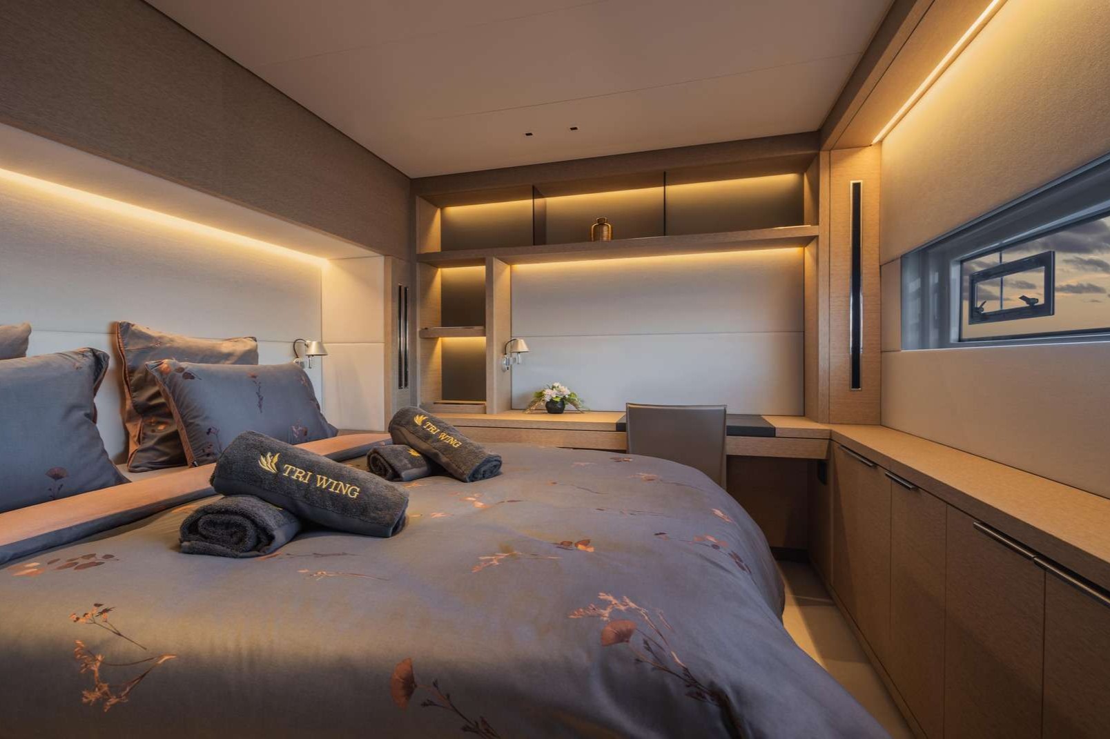 A standout feature of Tri Wing Endor is her silent air-conditioning system, powered by lithium batteries and dedicated inverters, allowing guests to sleep comfortably without the noise of a generator. With luxurious interiors, spacious outdoor areas, and best-in-class design, Tri Wing Endor delivers an extraordinary charter experience in the Virgin Islands.